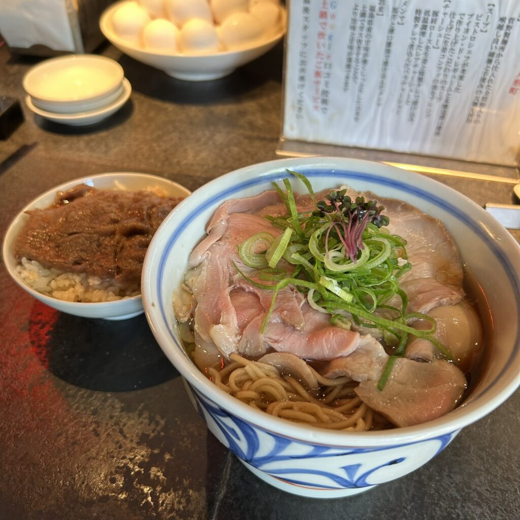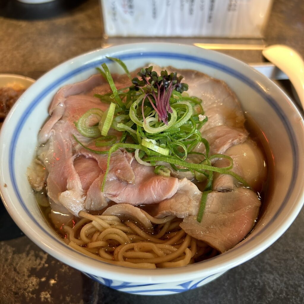 まずはスープから!醤油ベースなんだけど野菜の出汁の旨味がすんごい…!!!後味に生姜がふわっと香ってきて格別🥹おいしい🥹今までに味わったことがない新しい醤油ラーメンです!!!個人的に卓上のニラ胡椒を追加して少しピリッとさせる食べ方に大ハマりしました🫡