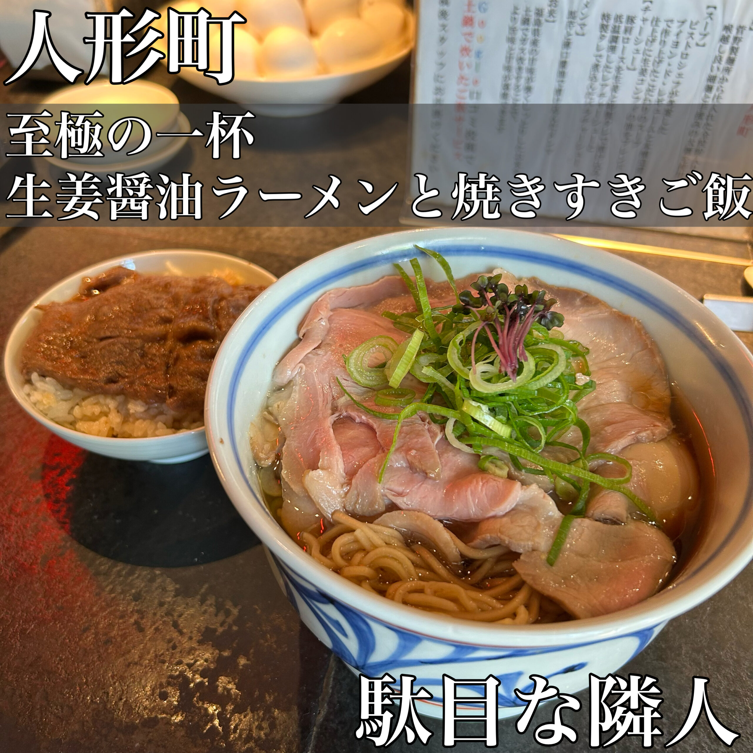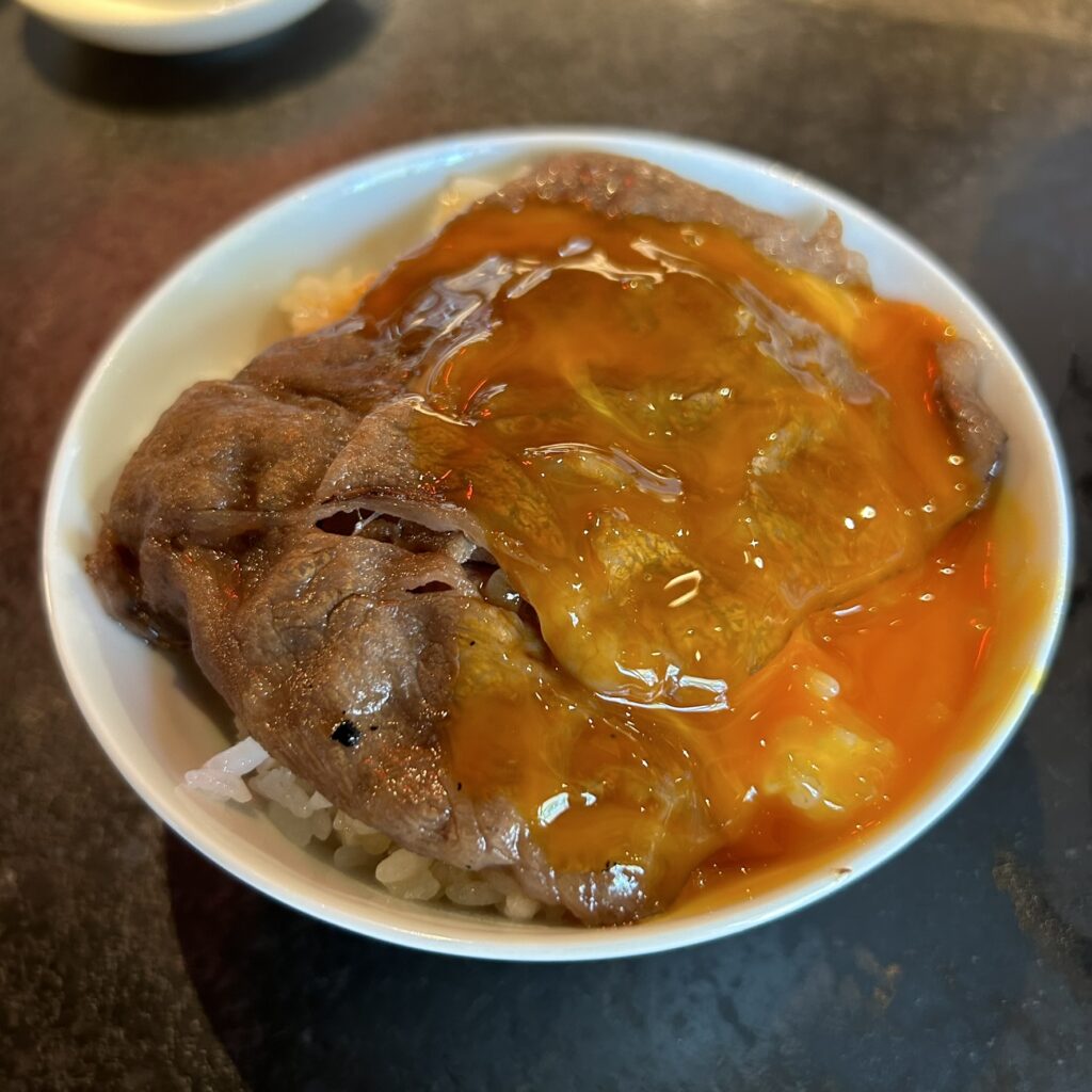 ●次は焼きすきごはん!!注文が入ってからカウンターから見えるところで店員さんが焼いてくれます!!もうね、ラーメン屋さんのクオリティではありません……焼肉食べにきた???お肉おいしすぎ…….ラーメンと同じくらいこの焼きすきごはんが評判良いのめっちゃ分かる……甘い割下も抜群に美味しいしご飯も甘みたっぷりなのよ……卓上にある生卵を絡めて食べるともう言わずもがなです。最高。騙されたと思ってみなさん食べてみてほしい!!!