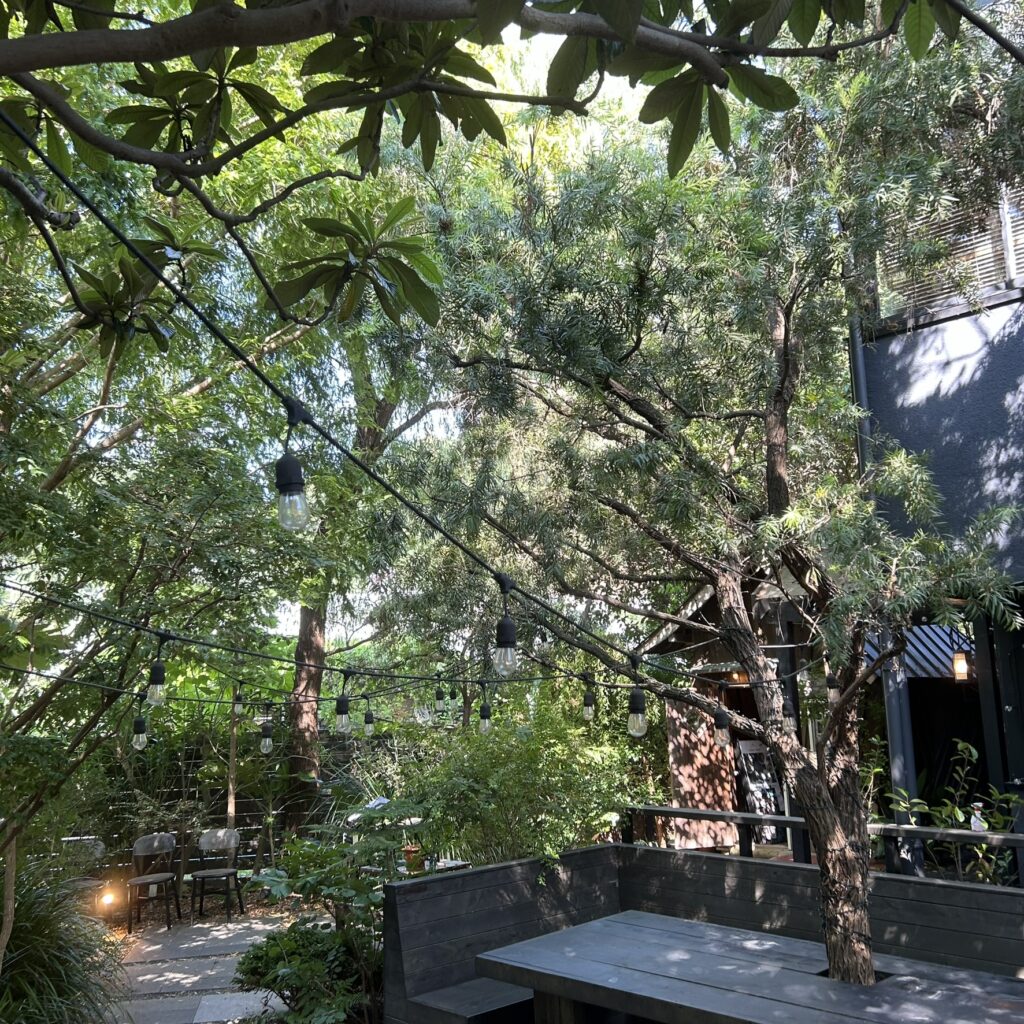 ●座席は124席(店内テーブル・ソファー60席 テラス64席)になります!テラスのみペット可能になります🐶わんちゃんと一緒に楽しめるのは嬉しいですね💓テラスは、緑があふれておりリフレッシュ出来る空間でした!真夏に伺いましたが緑のおかげでそれほど暑くなく快適に過ごすことが出来ましたよ!軽井沢みたいな避暑地のようでした✌️店内はウッド調で温かみがありました☺️店内でオーガニック食材、雑貨等も販売しているのでチェック必須です🫡
