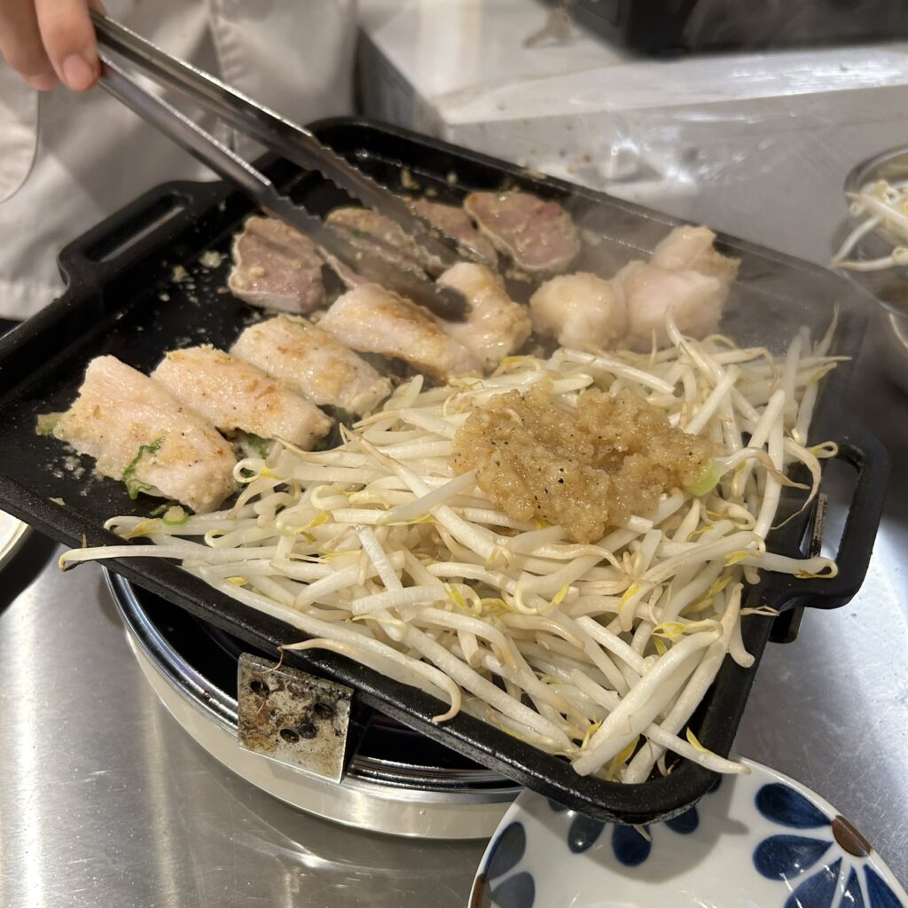●次に塩ダレのお肉!!店員さんがお肉の説明をしながらすべて焼いてくれます🥳店員さんが焼いてくれるのって高級店のイメージだったからこんなにコスパ良いのに焼いてくれるサービスまでしてくれるの?!と驚きを感じつつ、おもてなしを感じました!!