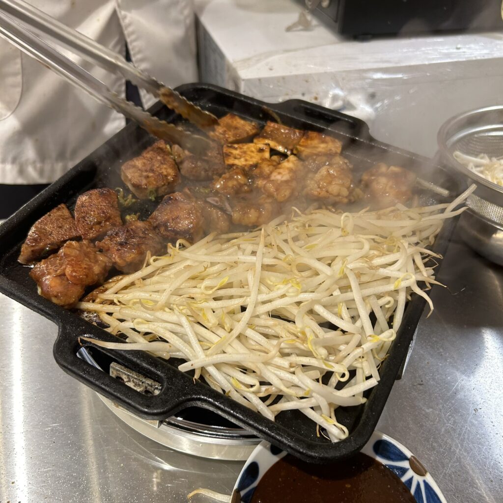 ●〆には焼きそば!!塩と味噌で選べます!お肉を焼いてた鉄板でそのまま調理してくれるので肉汁を吸った焼きそばになるのでこれまた最高✌️麺はもちもち系で太さがあるので食べ応えあります🙆♀️卵とレモンを絞ってくれるので少しカルボナーラを彷彿させられるような感じでした!ペッパーが効いているので〆にも関わらずお酒が進みました🍺