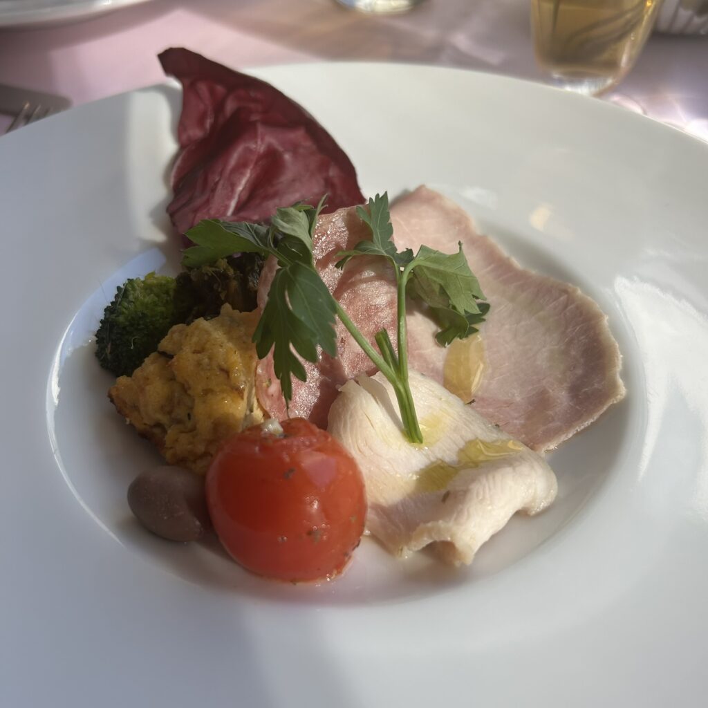 ●まずは、前菜の盛り合わせ!7種ぐらいあり満足感🙆♀️オリーブオイルの香りがよく、お肉の旨味が引き立っていた印象でした✌︎また、ブロッコリーをアンチョビの合わせ物につけて食べるのも絶品でした☺️